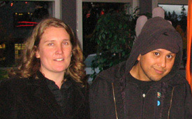OLYMPIA COUNCILMEMBER KAREN ROGERS (R) IS KNOWN FOR HER COMMITTMENT TO LOCAL ART, INDEPENDENCE, AND CREATIVE THINKING. SHE'S SHOWN HERE WITH PRODUCTION DESIGNER JESSICA DILLON, WHO ALSO CATERED LOCATION FILMING WITH HER FAMOUS CREOLE CUISINE |